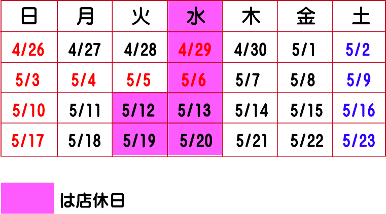2026年ゴールデンウィーク営業案内
